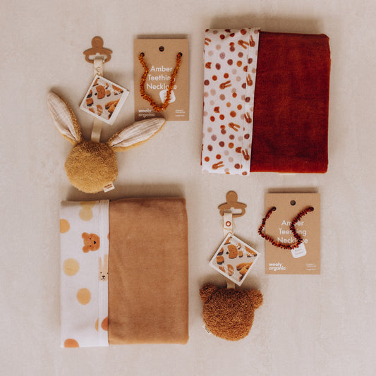 Bavaglia con porta ciuccio pois caramello cotone BIO
