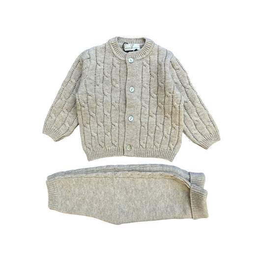 Completo Cardigan e Pantalone a trecce pura lana merino ultrafine