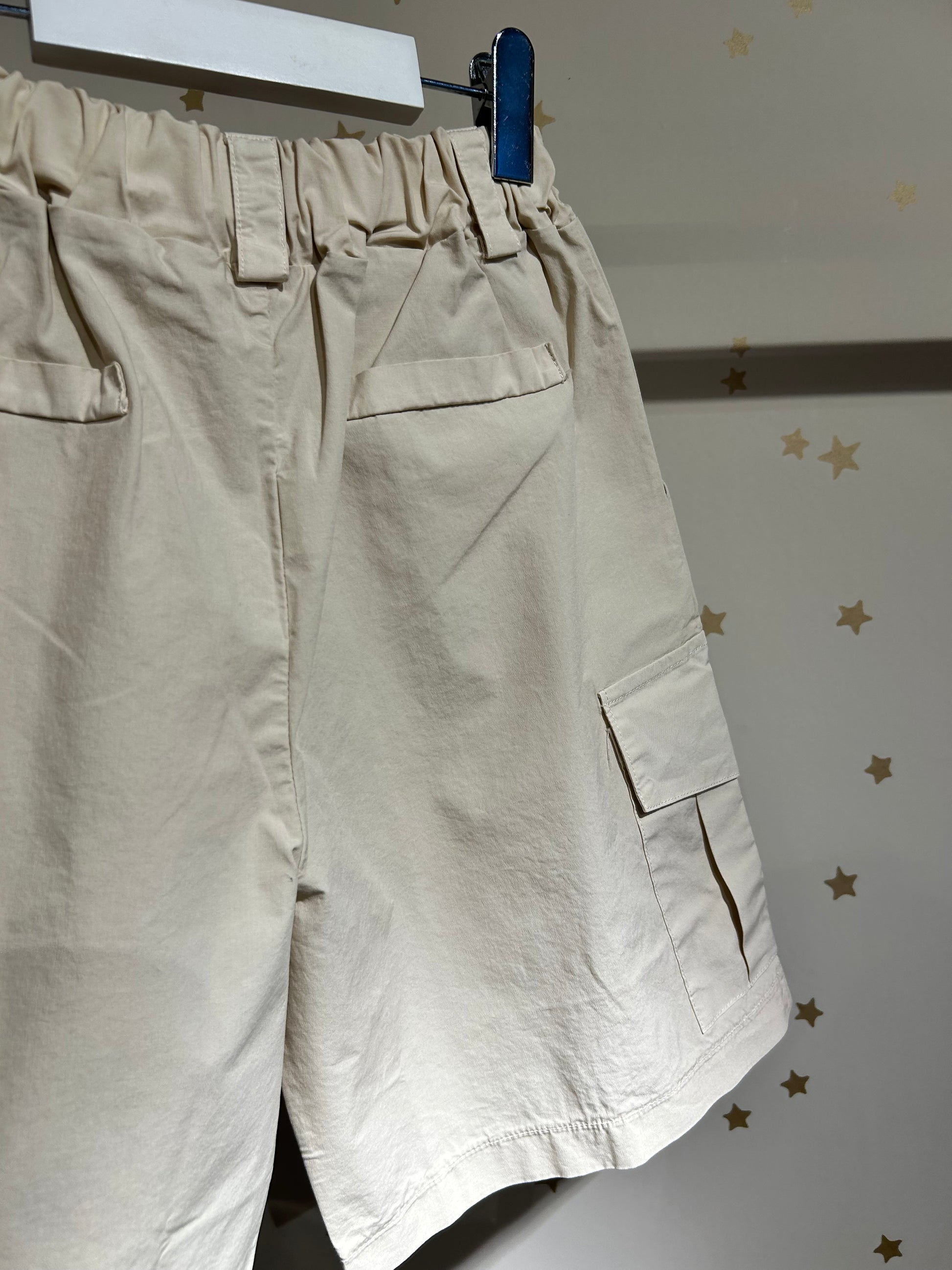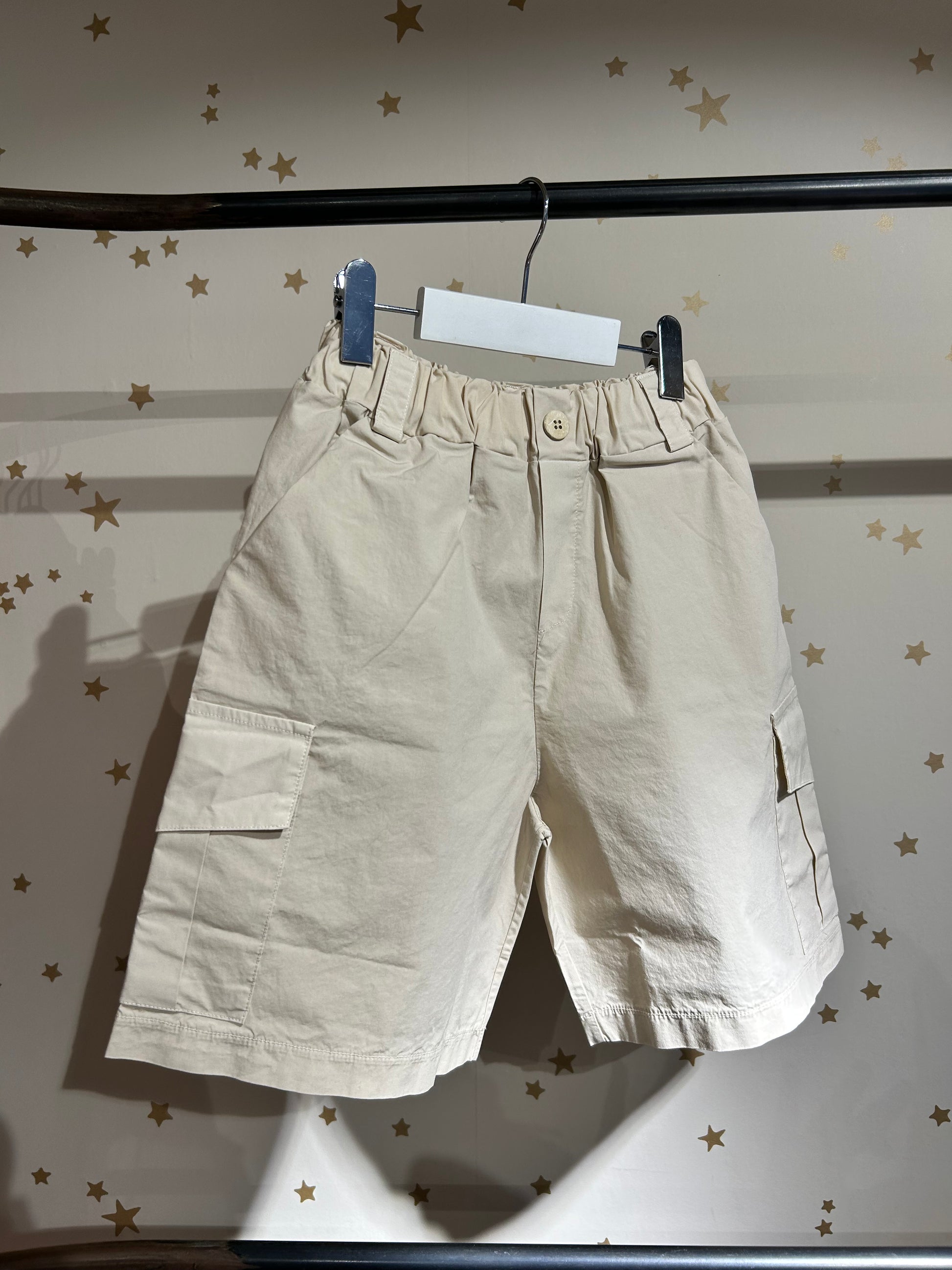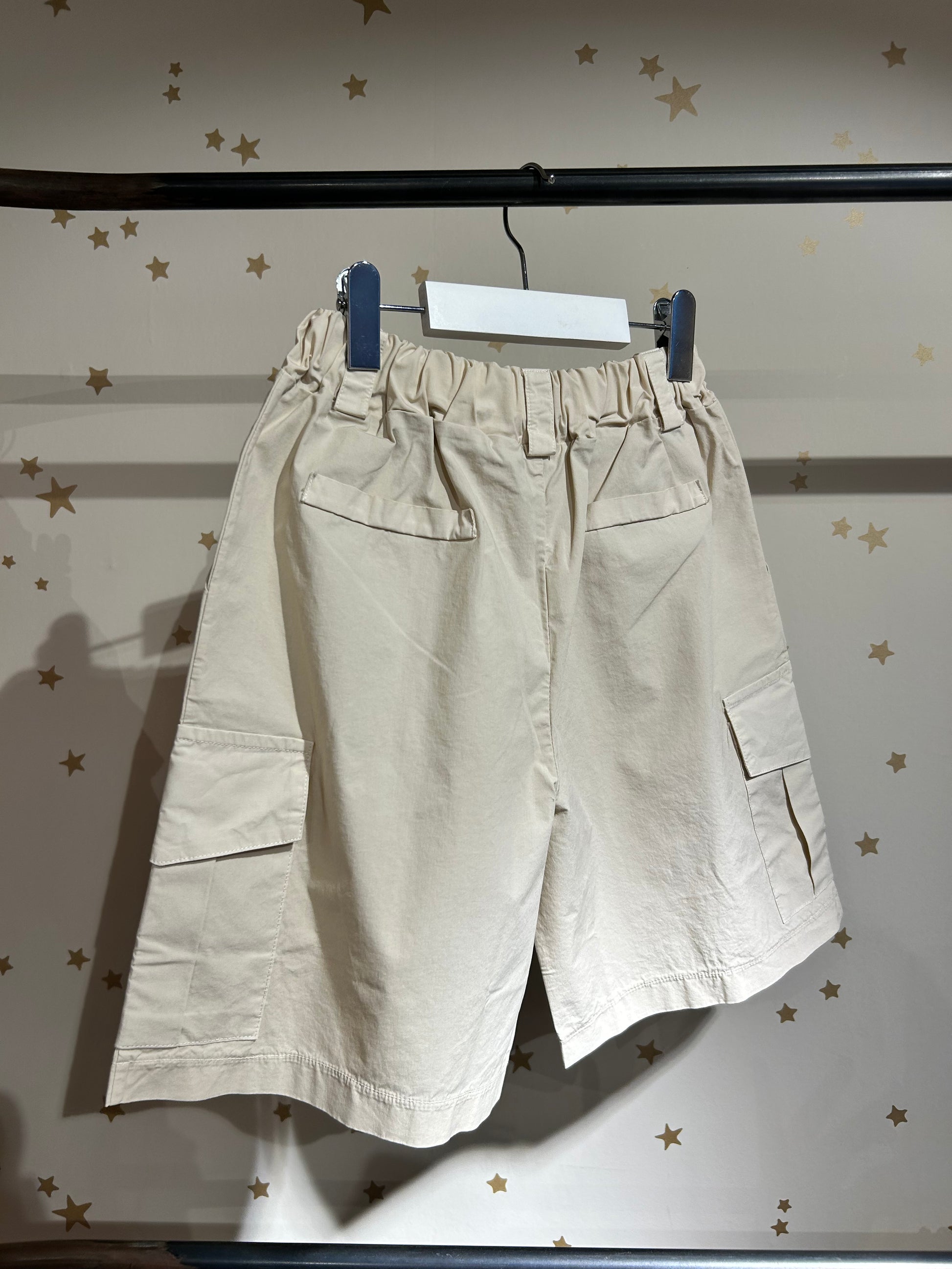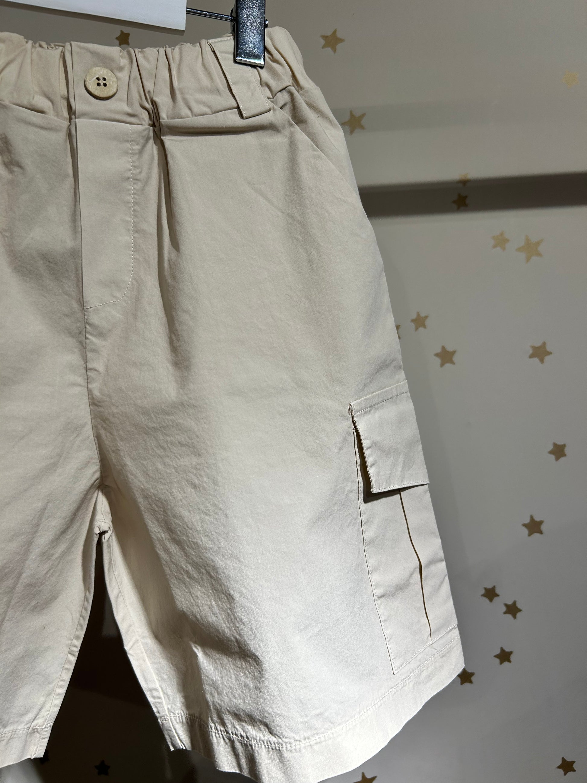 Rinfresca il guardaroba estivo del tuo bambino con il bermuda cargo Luna, realizzato in un morbido cotone, elasticizzato in vita  e dotato di tasche laterali e tasconi sulla gamba. Confortevole e funzionale, perfetto per le avventure all'aria aperta.