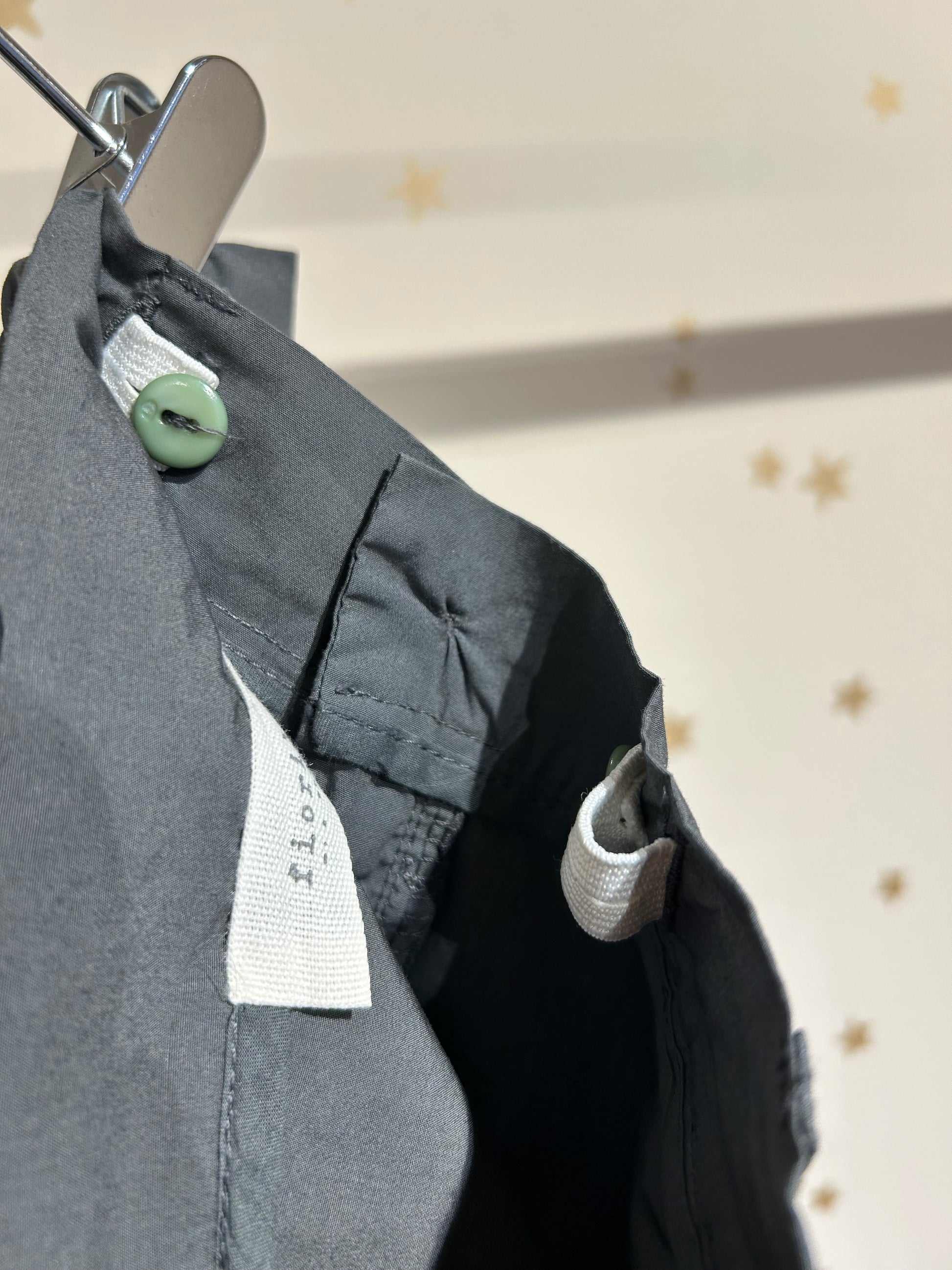 Pantalone cargo da bambino, in morbido cotone color antracite, fresco e leggero, perfetto per le giornate di sole e nelle mezze stagioni. Elasticizzato in vita e regolabile internamente con dei bottoni per una vestibilitá perfetta. Dotato di tasche laterali e tasconi sulle gambe per un look pratico e alla moda, ideale per i bambini in movimento. Realizzato con materiali di alta qualità per una maggiore durata nel tempo.