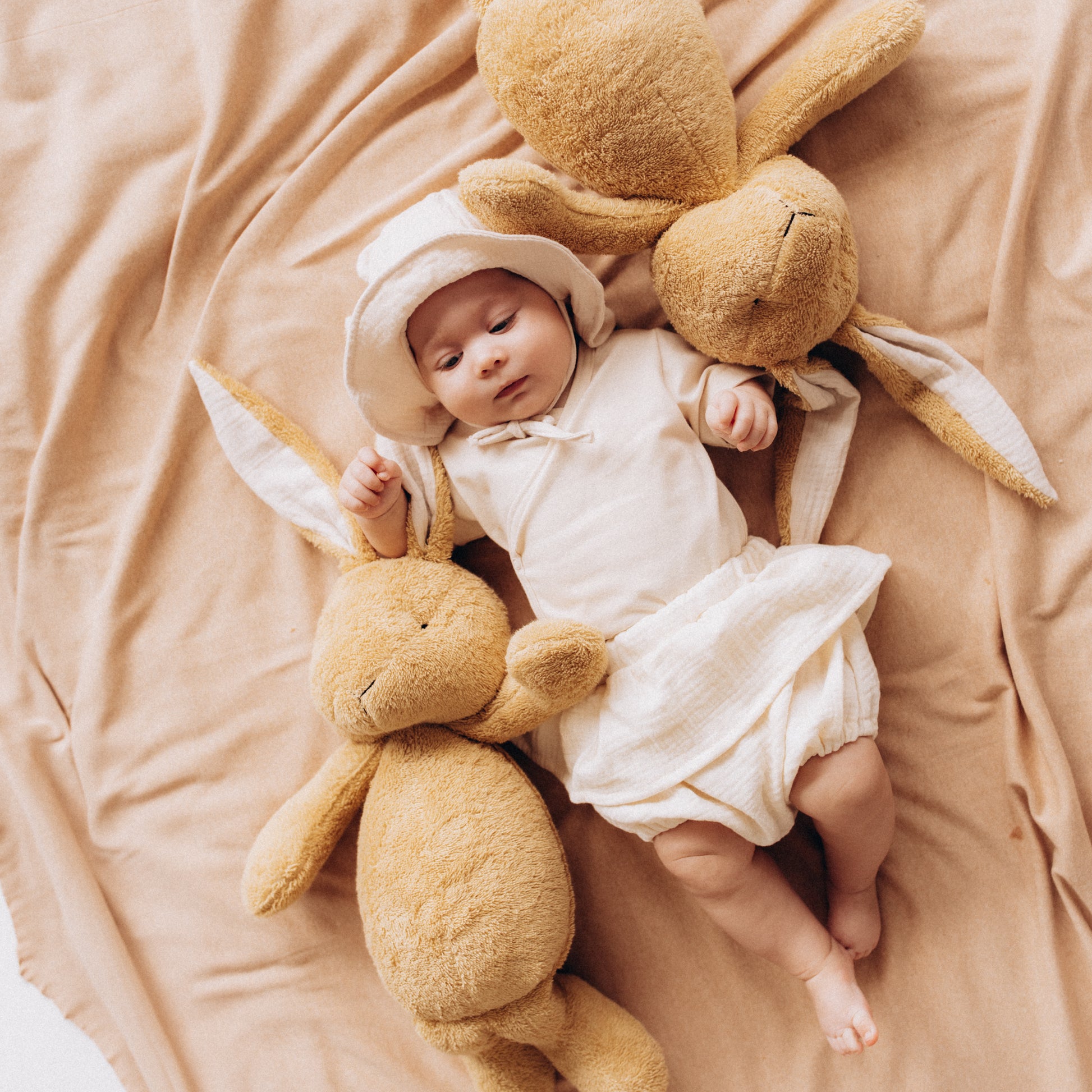 Incontra il tuo nuovo coccoloso compagno: un coniglietto giocattolo dolce e accogliente, fatto con amore e cura sia per i piccoli che per il pianeta. Con le sue lunghe orecchie e il corpo irresistibilmente morbido, questo coniglietto salterà sicuramente dritto nel tuo cuore. Ideale per coccole rilassanti o regali premurosi senza tempo.