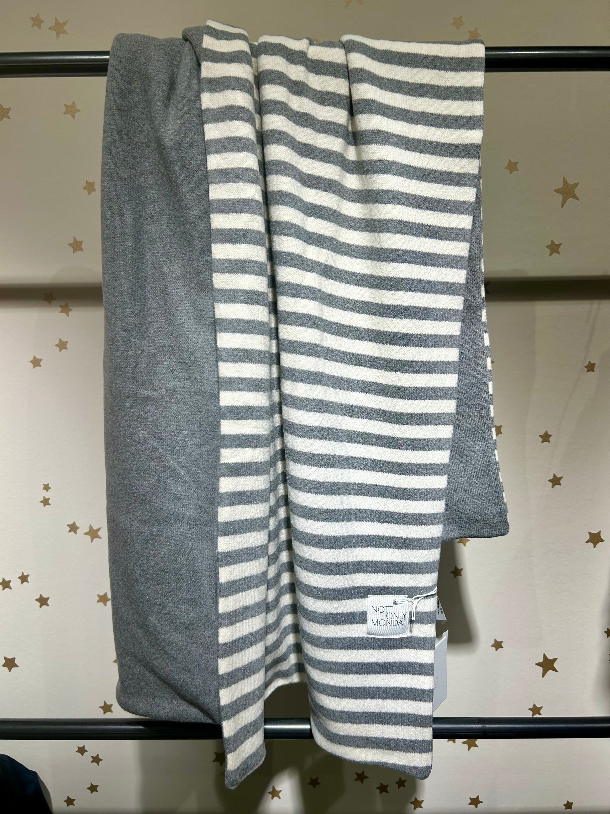 Coperta reversibile caldo cotone grigio/riga grigio 70x113 cm