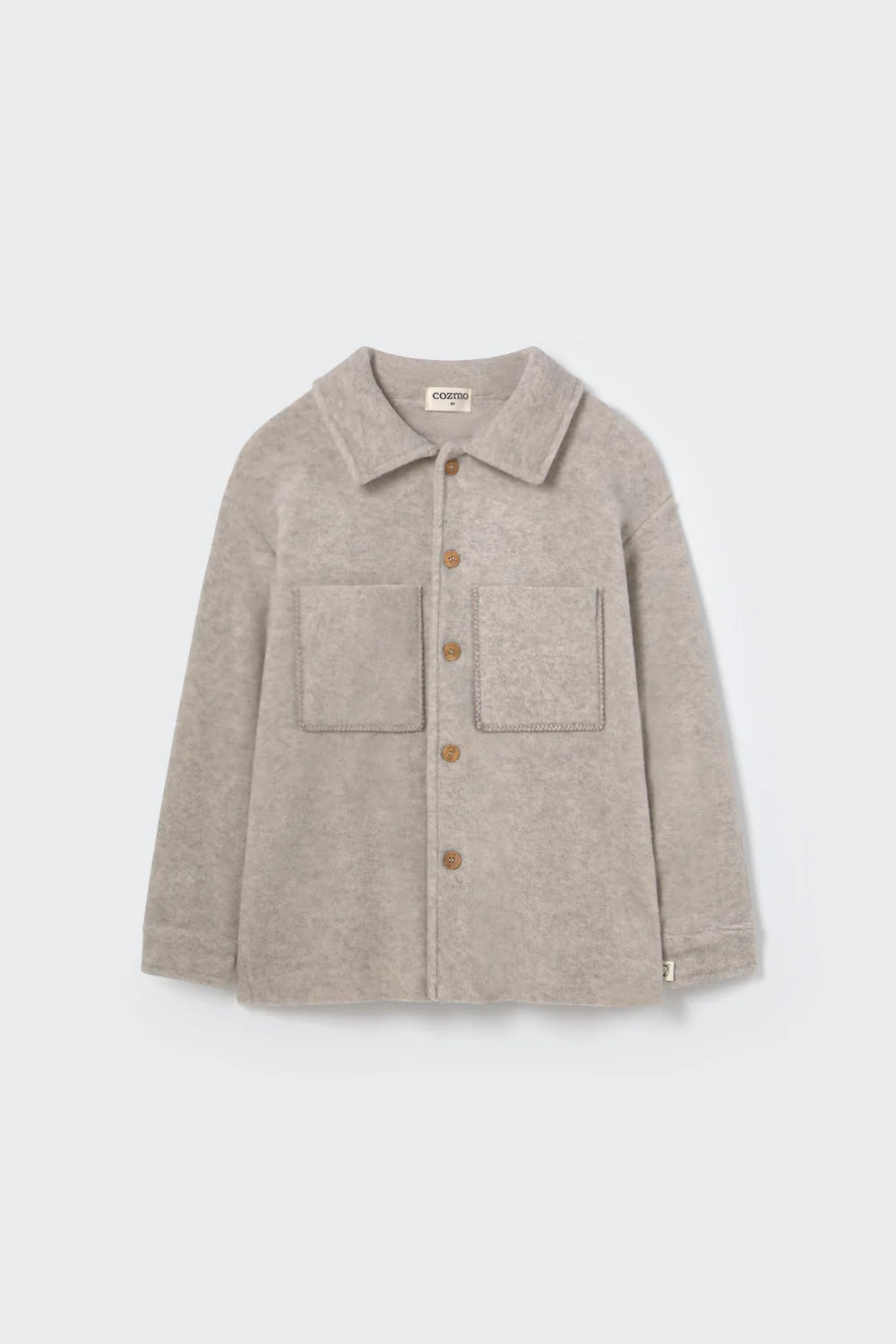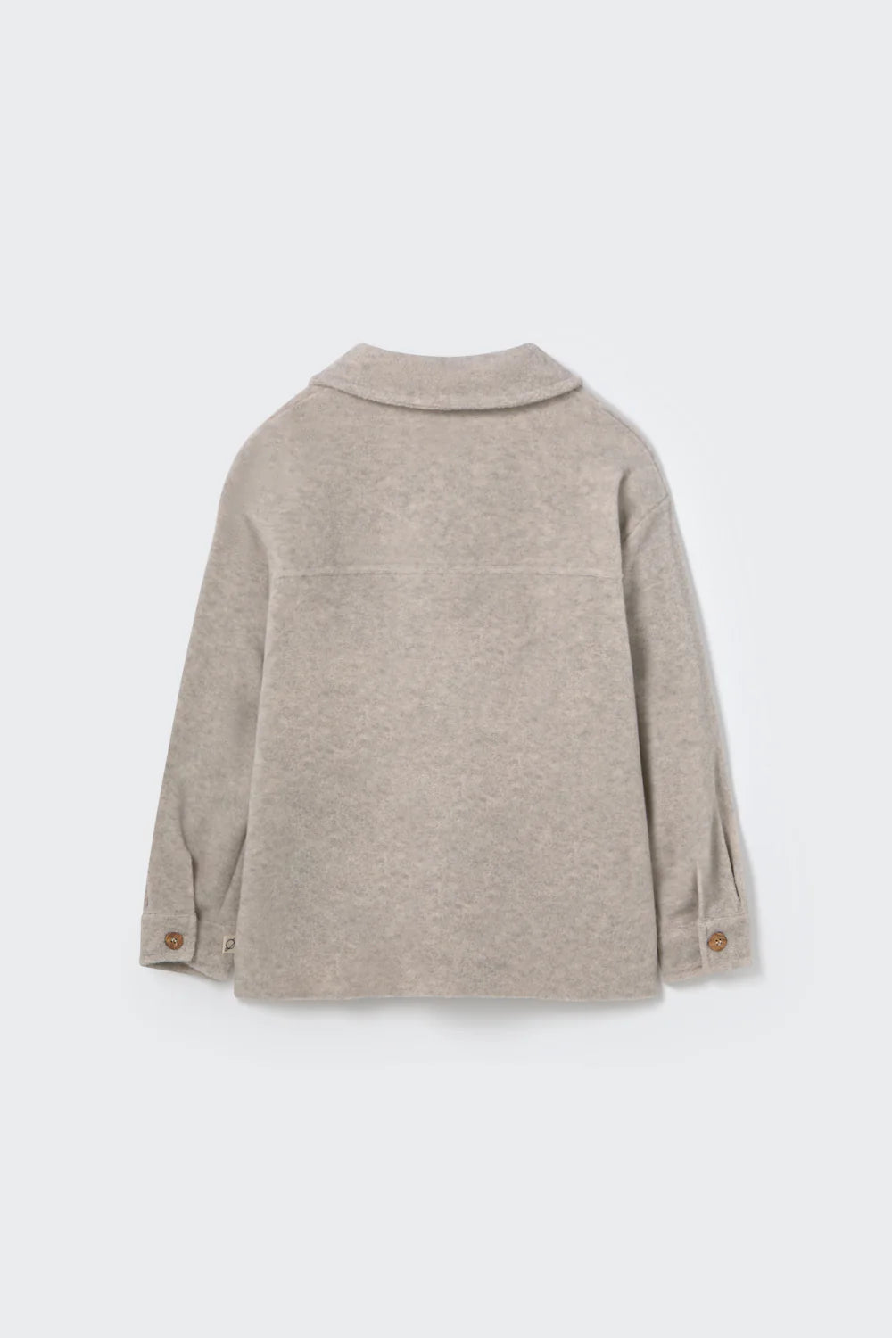 Giacca a camicia realizzata in tenero tessuto di bambù con un sottile effetto mélange. È dotato di un colletto classico, chiusura frontale con bottoni e tasche applicate con cuciture dettagliate sul petto. Morbido, traspirante e delicato sulla pelle.