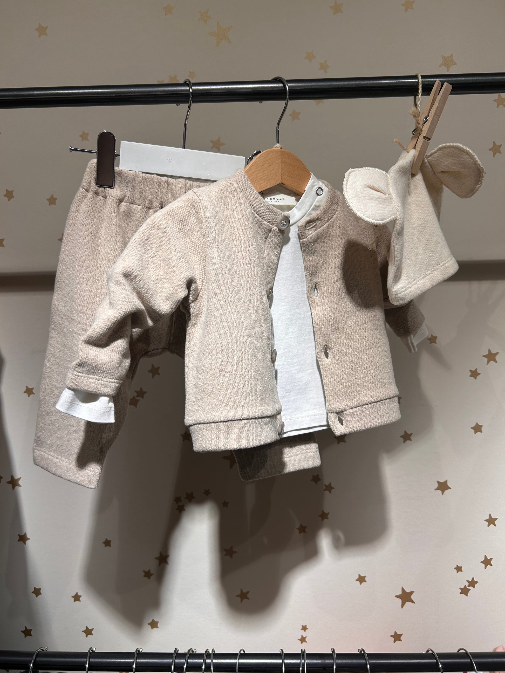 Questo cardigan in morbido caldo cotone betulla è il capo indispensabile da avere nell’armadio del tuo bambino! Con un versatile colore neutro, il girocollo e l'abbottonatura frontale si adatta a ogni outfit e terrà il tuo bambino caldo e comodo. Perfetto per un look casual o elegante.