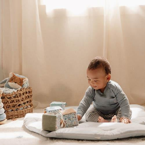 Con suoni, trame e colori diversi da scoprire, questo allegro set di morbidi blocchi di attività della collezione Forest Friends farà divertire il tuo piccolo per ore. Inoltre, la coordinazione occhio-mano di tuo figlio sarà stimolata attraverso il gioco. Il set è composto da quattro blocchi sensoriali, ognuno con il proprio colore morbido e un numero unico. Le mani del bambino scopriranno anche etichette divertenti, pannelli di peluche e un piccolo specchio.