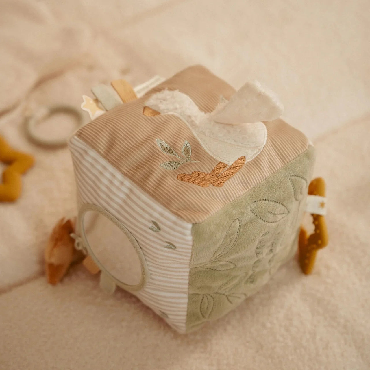 L'Activity Cube Newborn Naturals è pieno di sorprese per i piccoli esploratori! Ogni lato invita a giocare, con tessuti morbidi, suoni rugosi, etichette giocose e uno specchio sicuro da guardare. Questo stimola i sensi e incoraggia la curiosità.