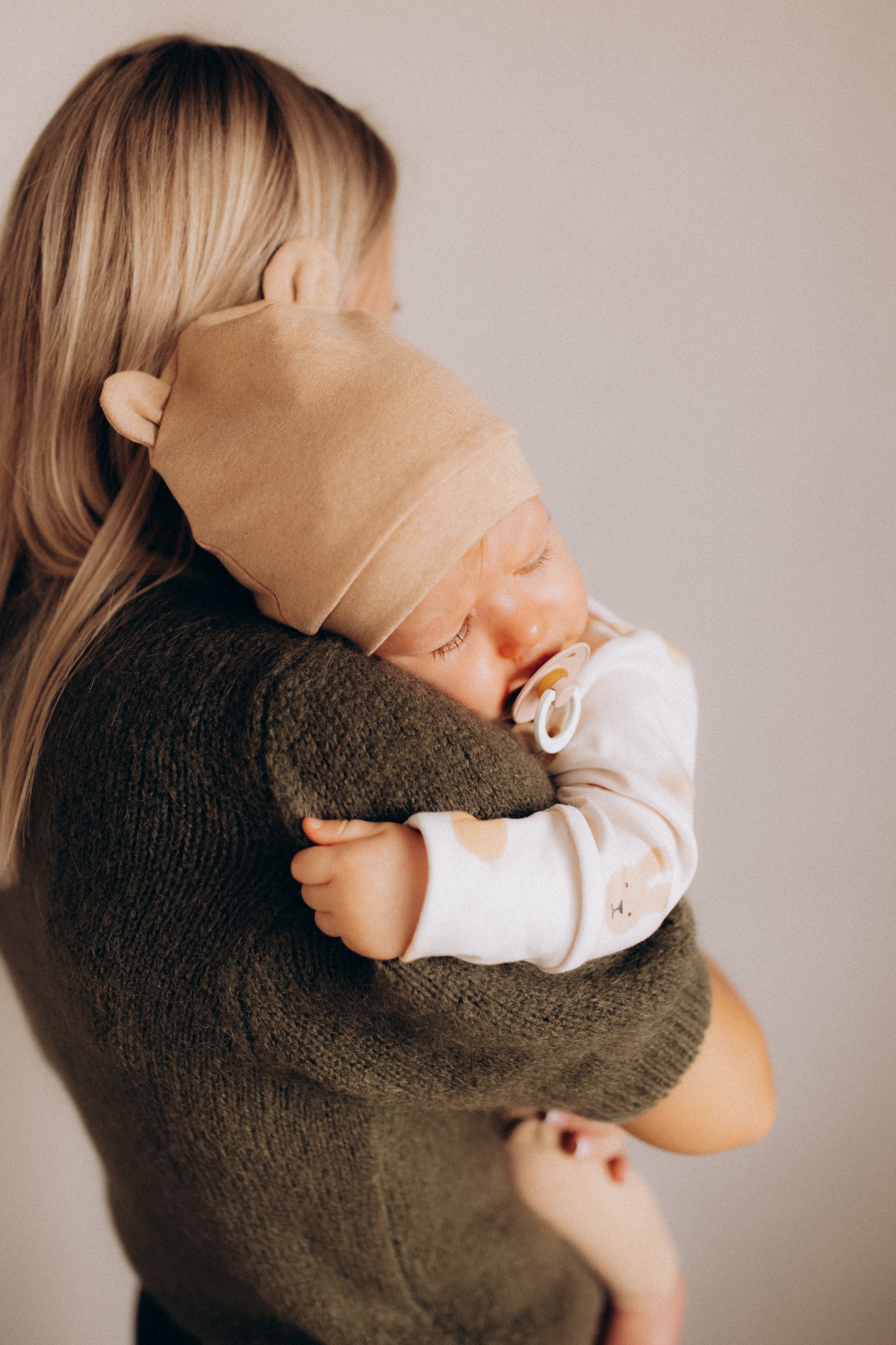 Cuffia nascita da neonato in cotone biologico con simpatiche orecchie da orsetto. Realizzato con amore e attenzione ai dettagli.