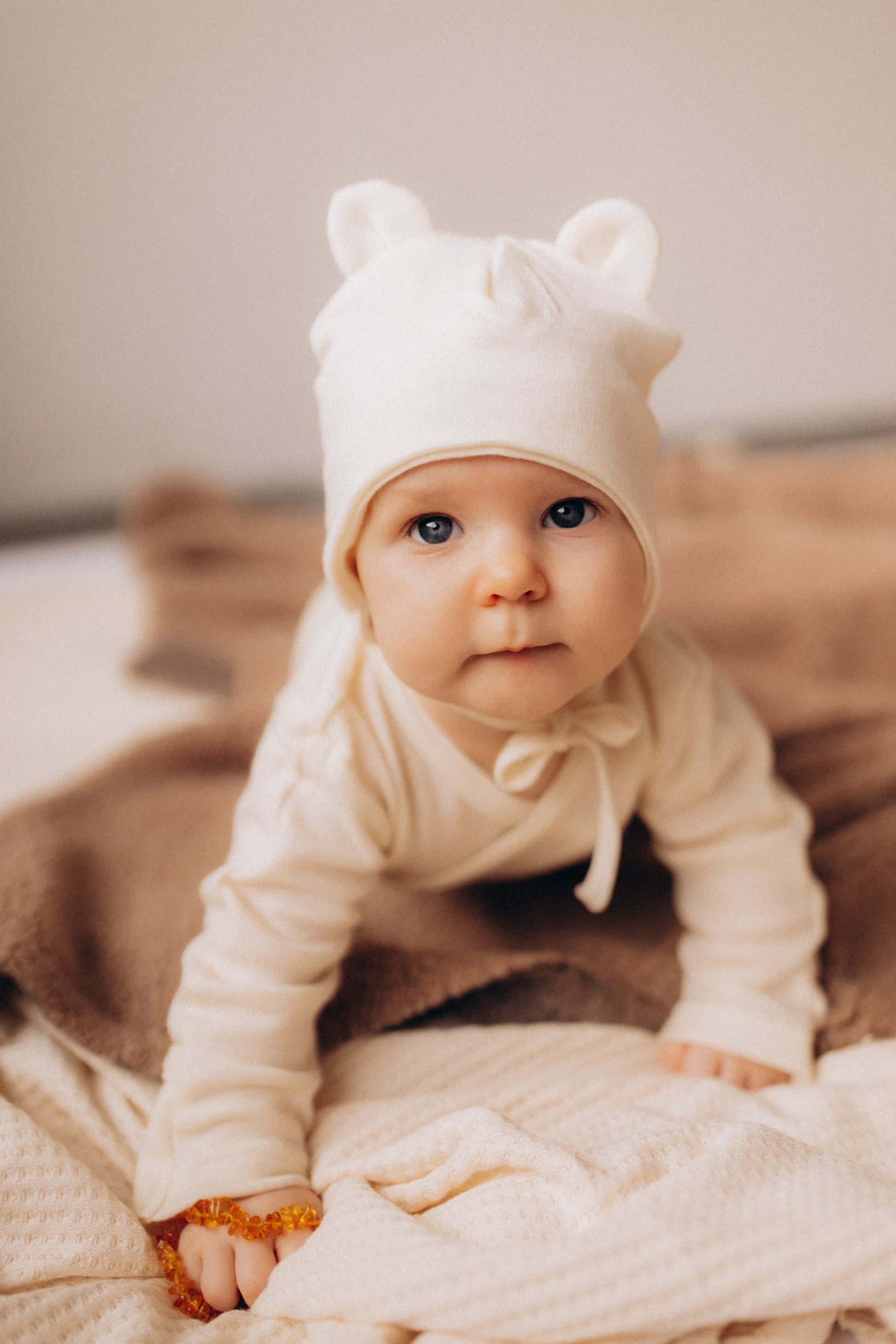 Cuffietta neonato orecchie orso écru cotone BIO