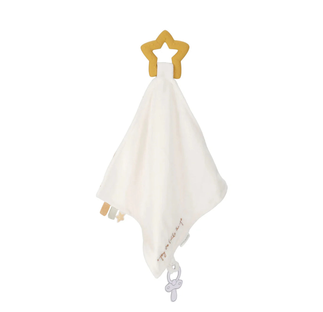 Il panno per coccole con anello per dentizione Newborn Naturals offre la perfetta combinazione di comfort e sollievo. Il panno morbido fornisce un senso di sicurezza, mentre l'anello per la dentizione lenisce durante la dentizione. Leggero e facile da tenere, ideale per le piccole mani che vogliono afferrare ed esplorare. Un accessorio adorabile e pratico per momenti di coccole pieni di comfort!