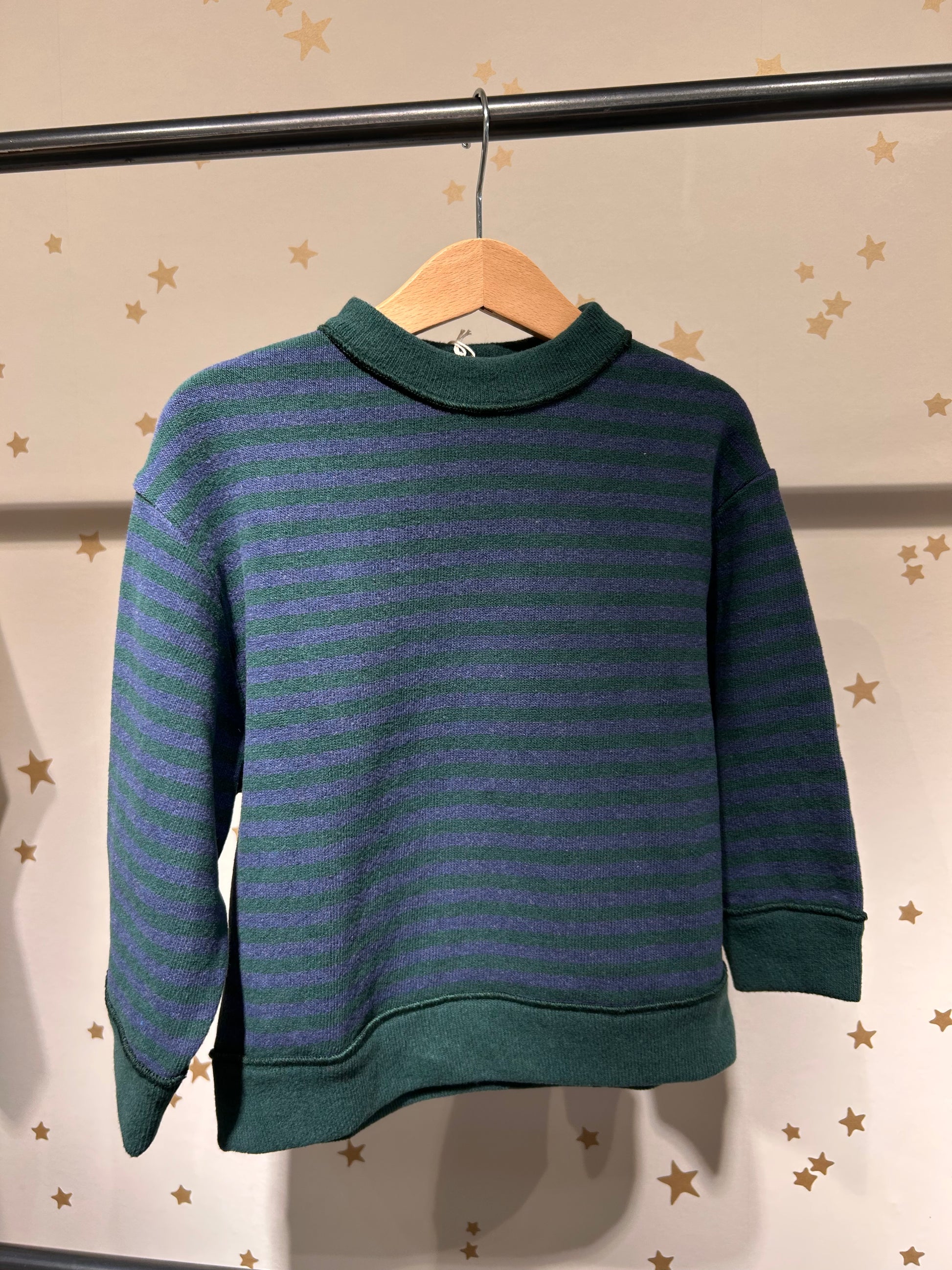 Lascia che il tuo bambino resti al caldo e con stile grazie alla felpa a righe blu/verde, in morbido caldo cotone. Il modello oversize offre un comfort unico, perfetto per giocare e divertirsi. Completa il look con il pantalone in velluto maiolica blu per un outfit cool al 100%.