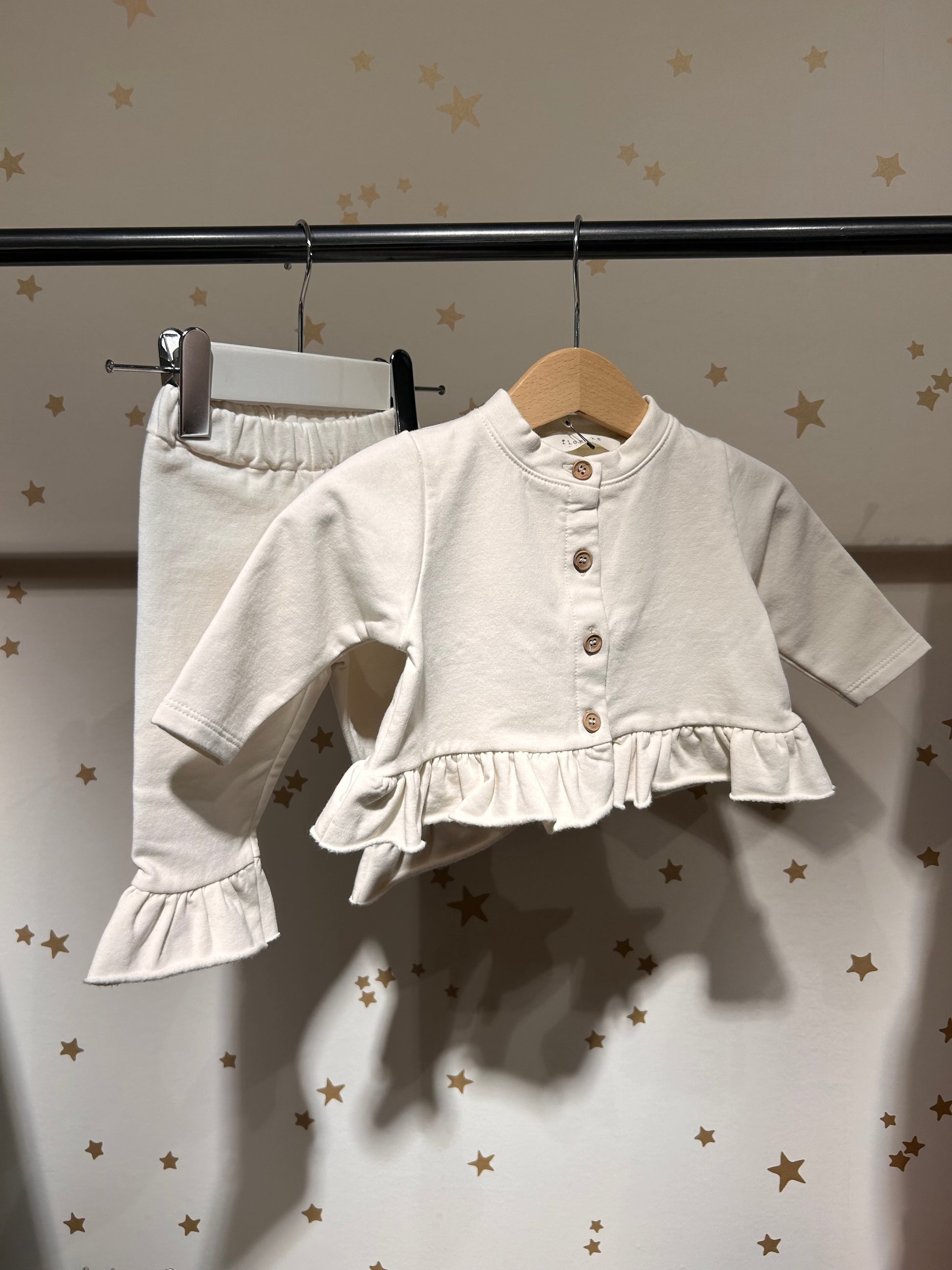 Pantalone felpa baby avorio con rouge
