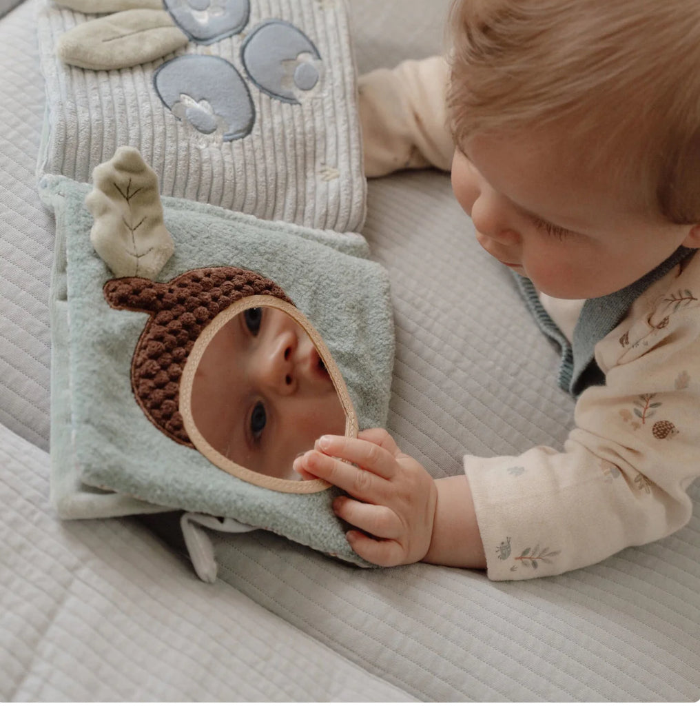 C‘è molto da scoprire con questo colorato libro di attività di Forest Friends. La dolce volpe ti invita a dare un'occhiata alla foresta incantevole. C'è molto da scoprire con le diverse trame e attività, come un piccolo specchio, un sonaglio e giocattoli nascosti. Il libro morbido ha anche varie etichette da sentire. Questo libro non solo stimola i sensi, ma è anche buono per lo sviluppo della coordinazione occhio-mano.