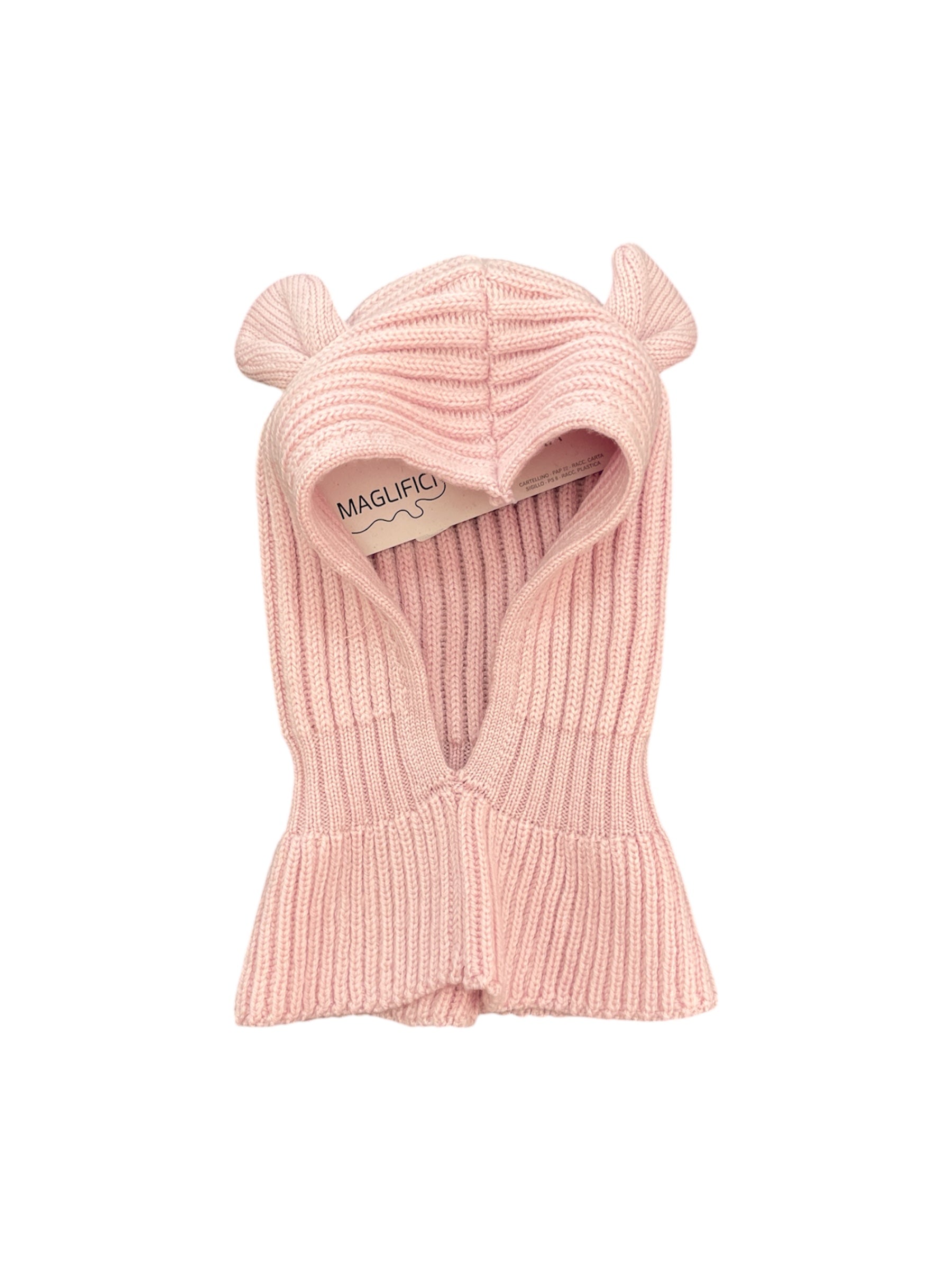 Berretto per neonati modello passamontagna per coprire perfettamente tutta la testa comprese orecchie e collo. Presenta due simpatiche orecchie applicate a mano dalle nostre sarte esperte.
