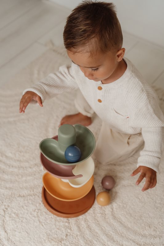La torre a spirale aiuta a sviluppare la coordinazione occhio-mano e insegna ai più piccoli la causa e l'effetto, rendendo il gioco divertente ed educativo.