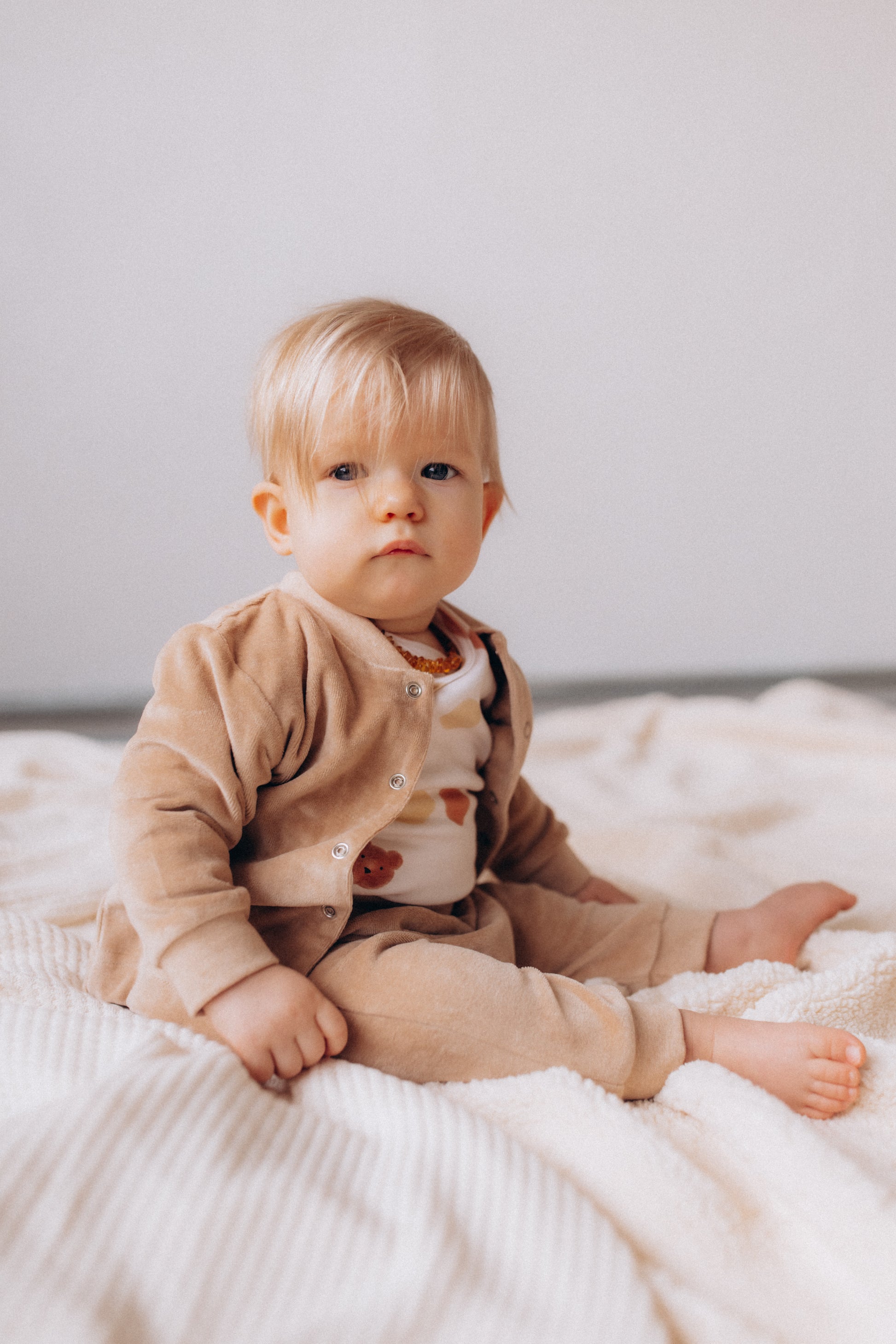 Pantaloni in velluto di cotone sono dotati di una cintura elastica che offre una vestibilità sicura ma confortevole, rendendo la vestizione e il cambio del pannolino facili e senza problemi. Il materiale di ciniglia fornisce un calore eccellente, rendendo questi pantaloni ideali per il clima più fresco pur essendo abbastanza traspiranti per l'uso negli spazi interni.