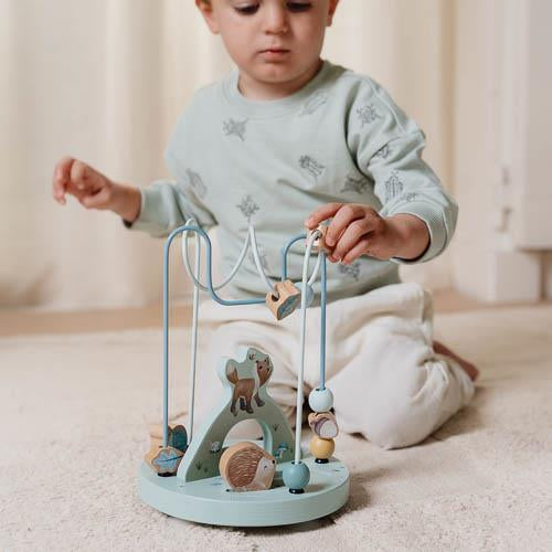 Sposta le perline da sinistra a destra nell'incantevole mondo di Forest Friends. Lungo la strada, incontrerai la volpe, il riccio, il piccolo coleottero e la piccola lumaca, che vivono e giocano nella foresta. Scorrili avanti e indietro per scoprire le gustose ghiande, le foglie e le pigne nascoste tra le radici degli alberi. Usa la tua immaginazione e lascia che l'avventura abbia inizio! Questa spirale di attività in legno offre un'esperienza educativa e incantevole per il tuo piccolo.