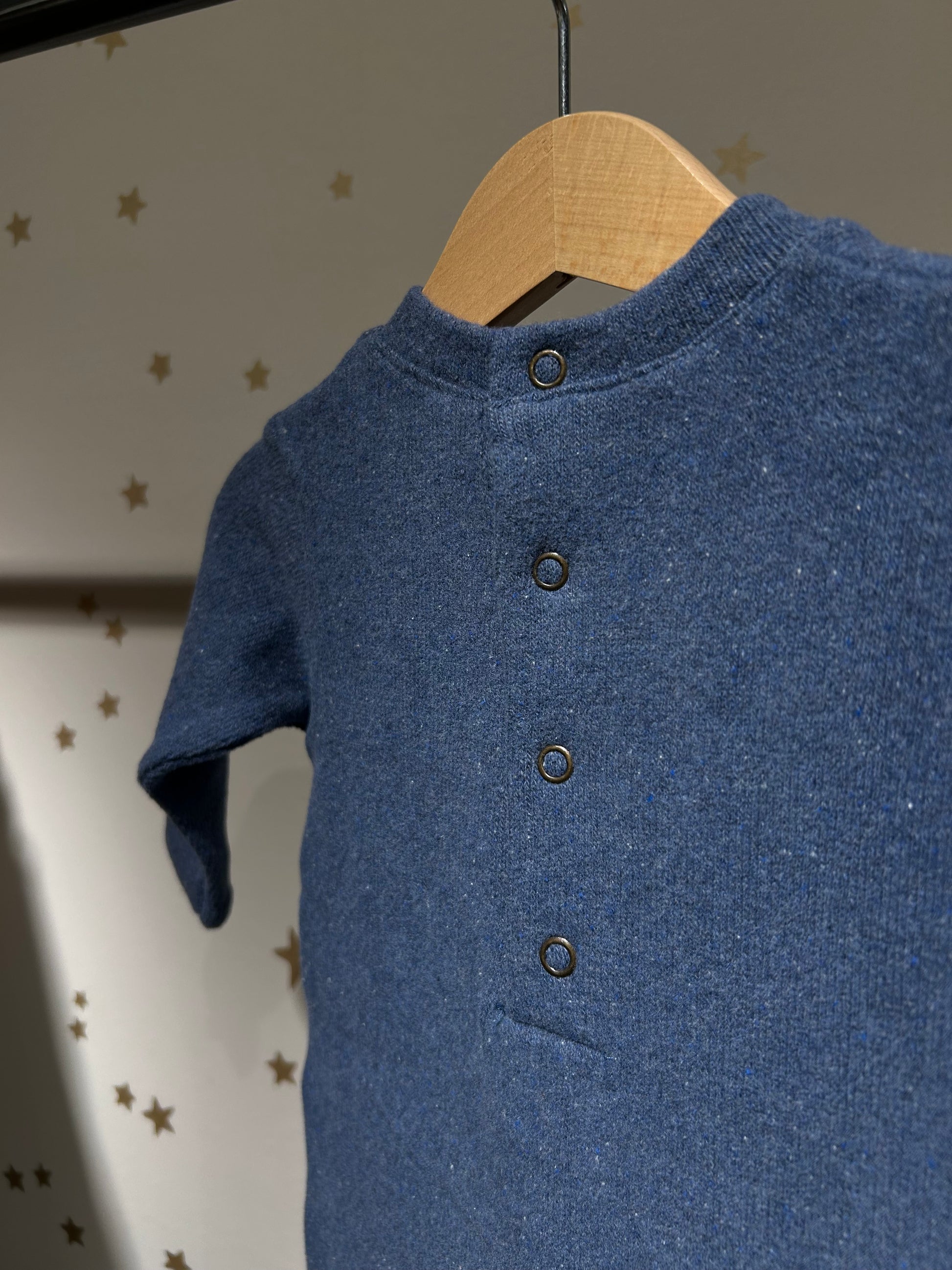 La Tutina in caldo cotone azzurro è perfetta per il tuo neonato. Realizzata in morbido caldo cotone, con simpatiche tasche, è dotata di pratici bottoncini a clip sul fondo e sul retro per facilitare il cambio. Un regalo nascita bello e originale.